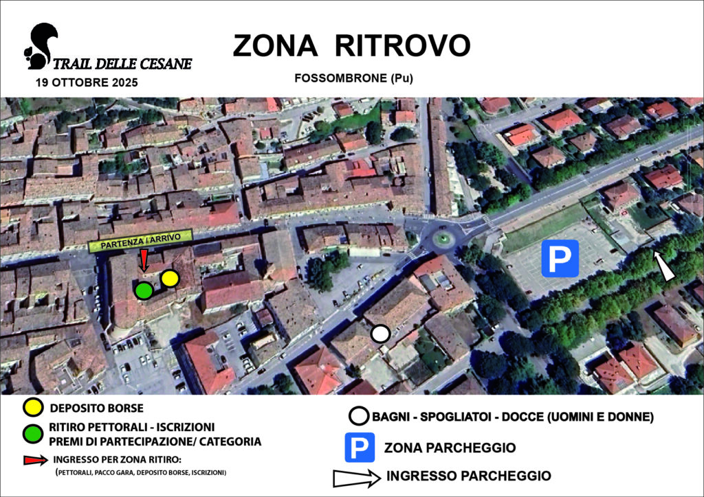 puoi trovare il parcheggio dedicato, punto di ritrovo (partenza/arrivo), spogliatoi ,docce e tutto ciò che ti può servire consultando la cartina che trovi qui sotto.